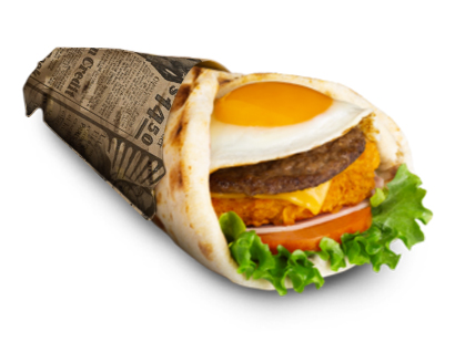 2 steaks, 2 cheddar, oeuf, jambon de dinde, tender, salade, tomate, oignon et 2 délicieuses sauces