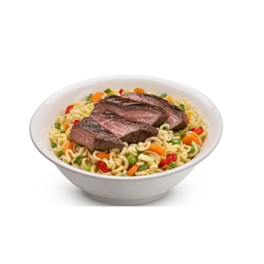 Nouilles fines, oeufs, boeuf, carottes râpées, chou râpé, poireaux râpés, pâte de gingembre, pâte d’ail, sauce tomate ou ketchup, sauce soja, sel et poivre, huile ou beurre